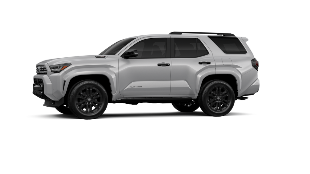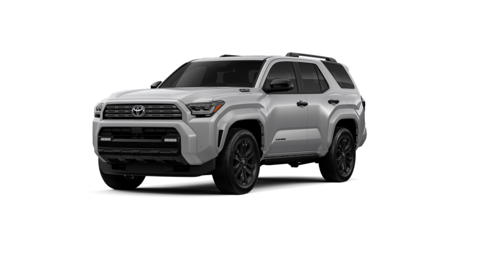 • Dark-chrome tri-bar grille; gloss-black mirror caps and door handles; color-keyed overfenders and rear spoiler; gloss-black "platinum" and "4runner" badges.